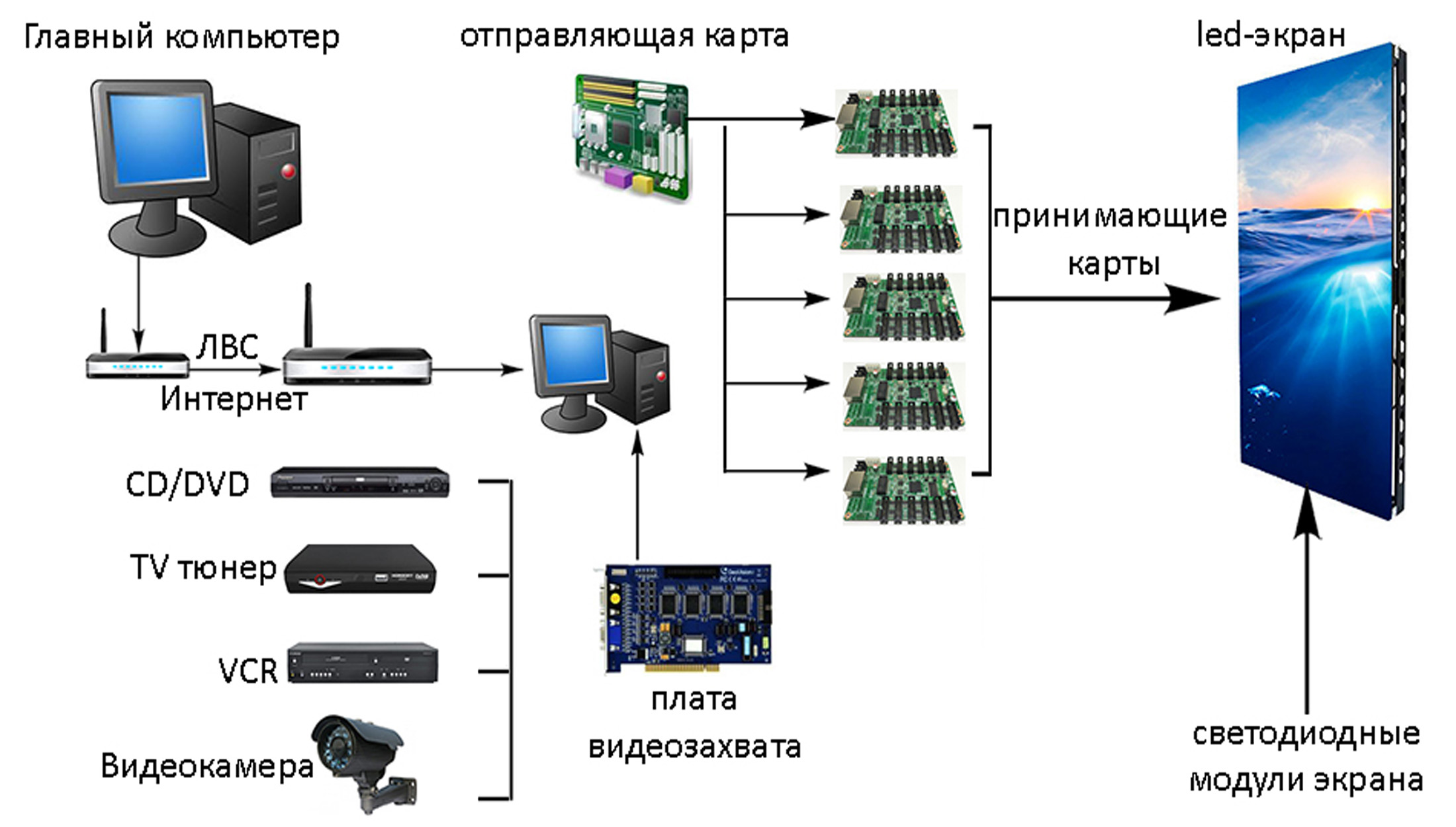 Принцип работы видеоэкрана показан ниже: