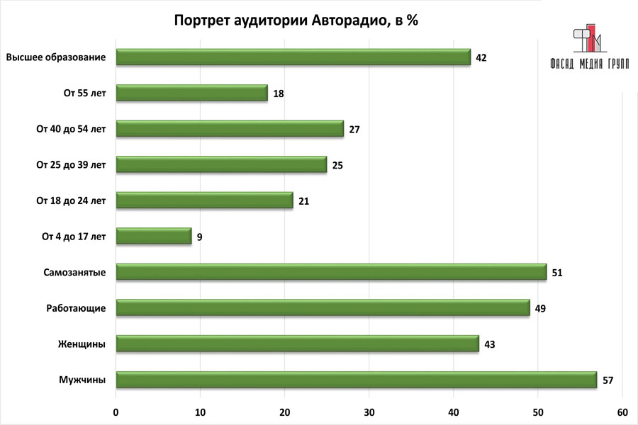 Благодаря качественному, сбалансированному контенту аудитория «Авторадио» многочисленна и разнообразна.