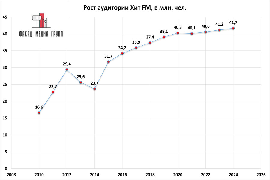 Показатели аудитории «Хит ФМ» по России: