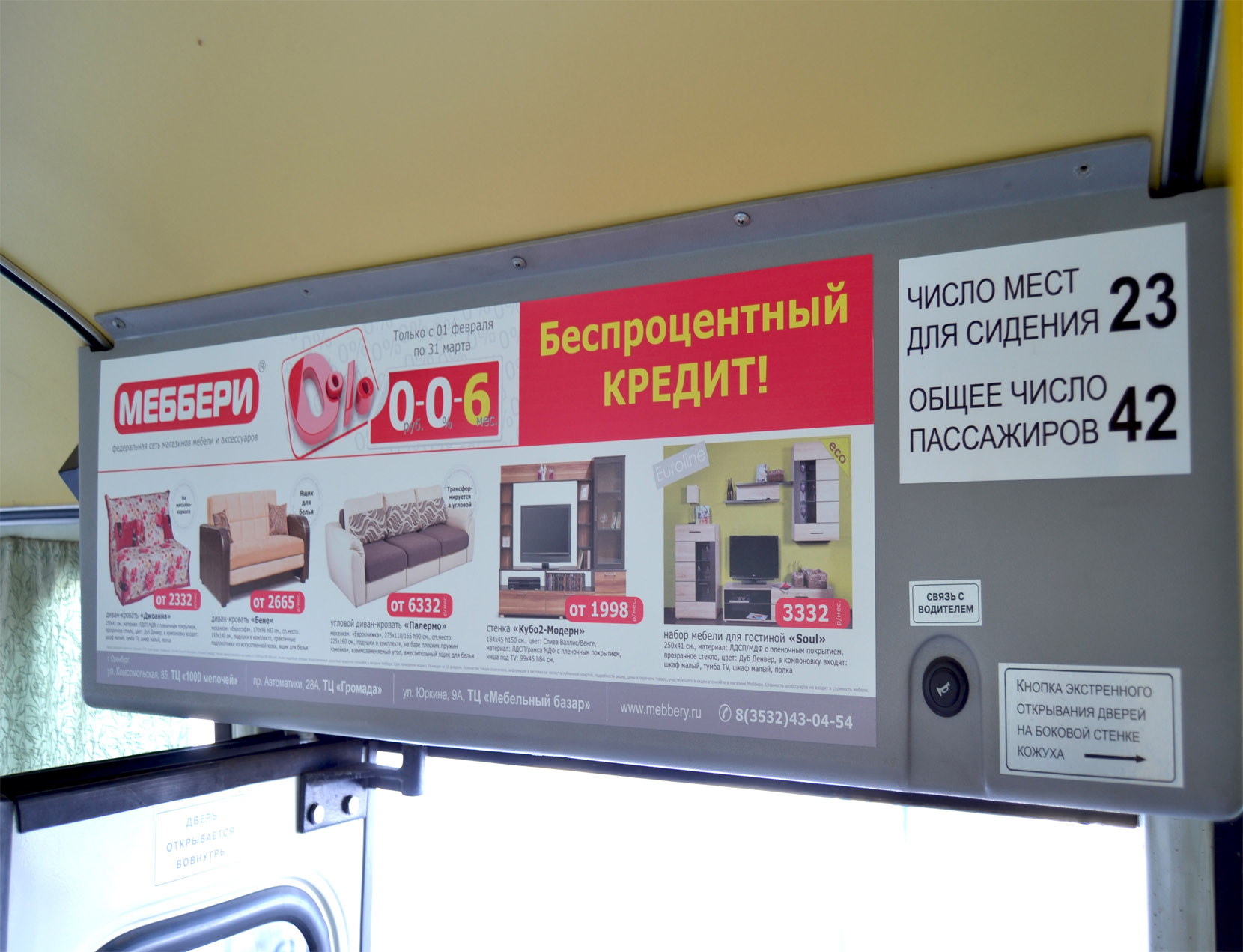 Напомним, что рекламу в автобусах в Златоусте можно разместить как в виде стикера, афиши, бортовой оклейки, так и запустить трансляцию рекламного ролика на установленных в салоне транспортного средства мониторах.