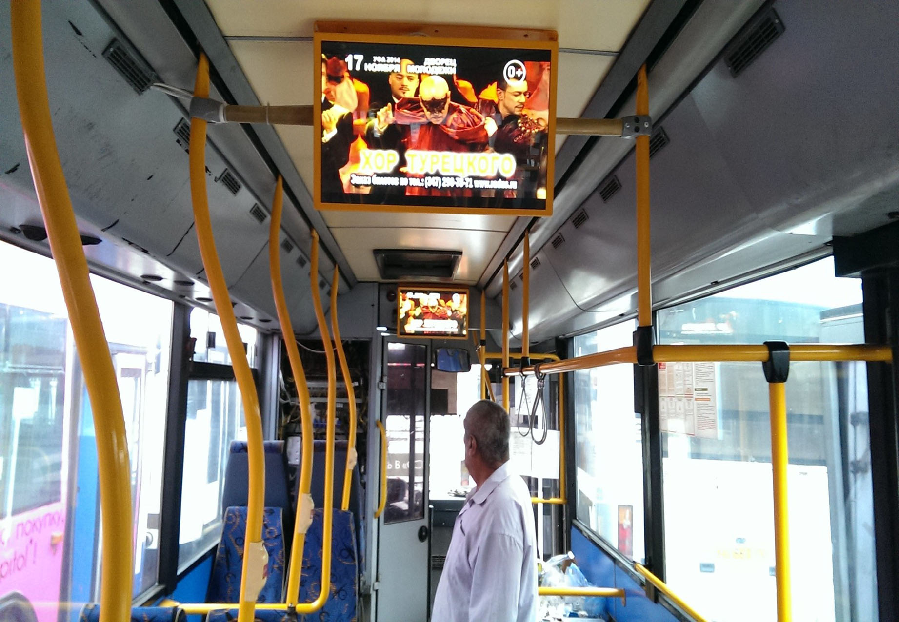 Реклама на мониторах в троллейбусе на фото выше