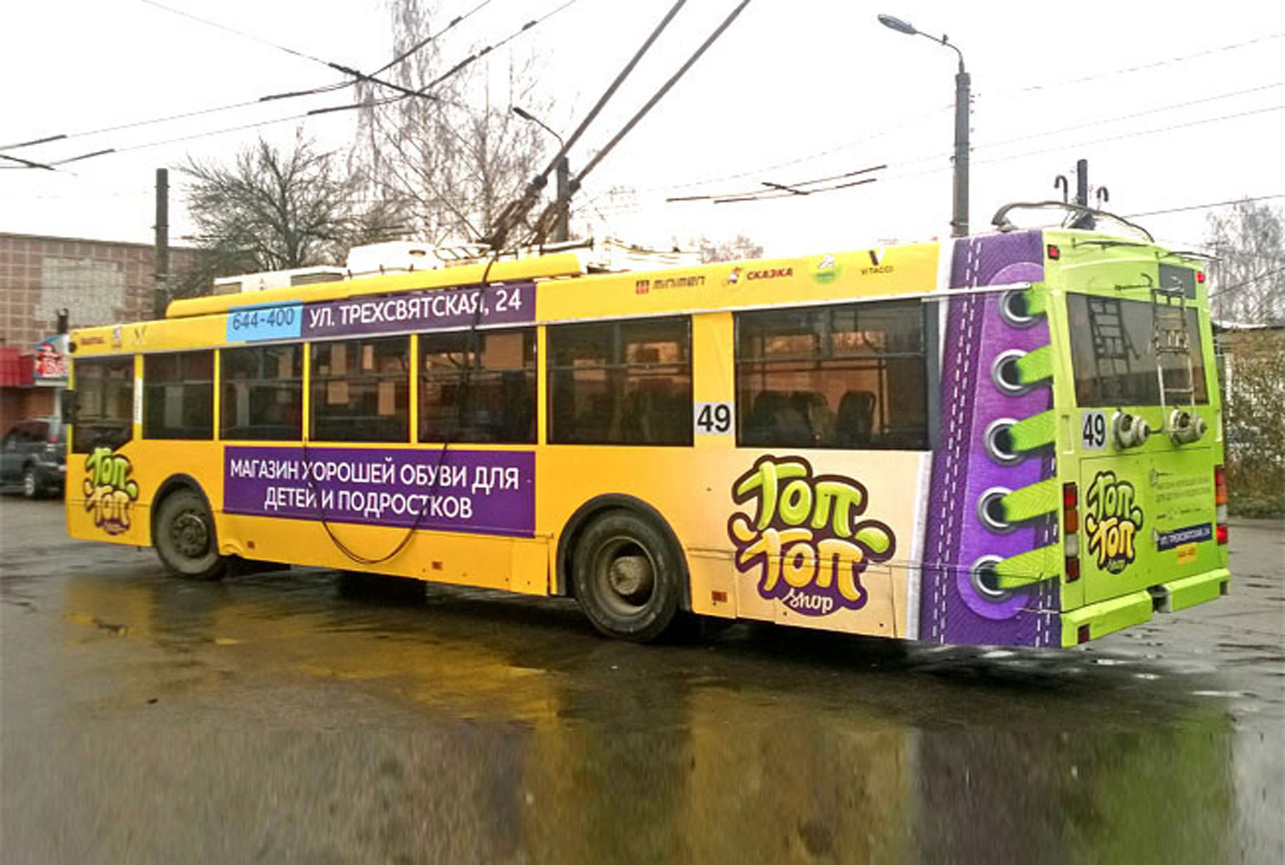 Примеры наших работы при размещении рекламы на троллейбусах представлены ниже: