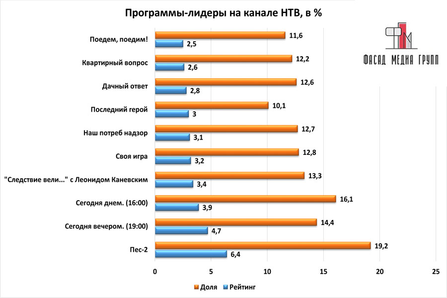 Популярность телеэфира на «НТВ» приводит к ежегодному увеличению спроса на рекламное время. Для привлечения клиентов из разных регионов России, увеличения процента продаж, повышения имиджа компании и узнаваемости бренда – размещайте рекламу на «НТВ». «НТВ» – это проверенный и востребованный канал для размещения рекламы на златоустовском ТВ. Для размещения рекламы на телевидении обращайтесь в рекламное агентство «Фасад Медиа Групп». Будем рады сотрудничеству.
