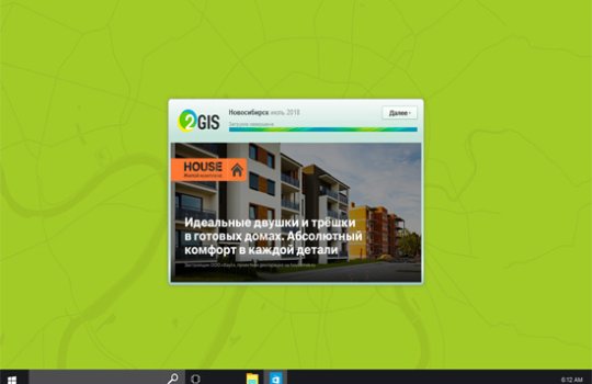 Пример баннера на стартовом экране 2ГИС (Двагис, ДубльГис) представлен на фото: