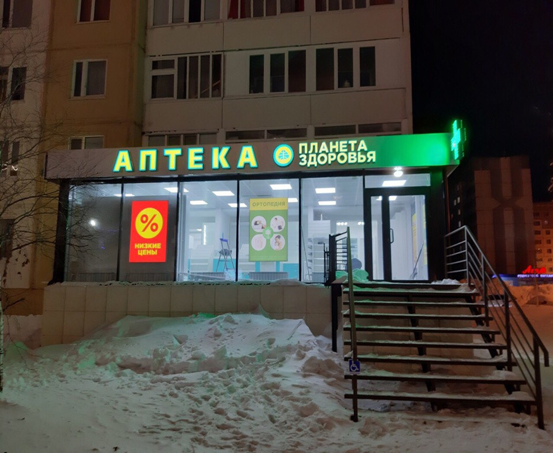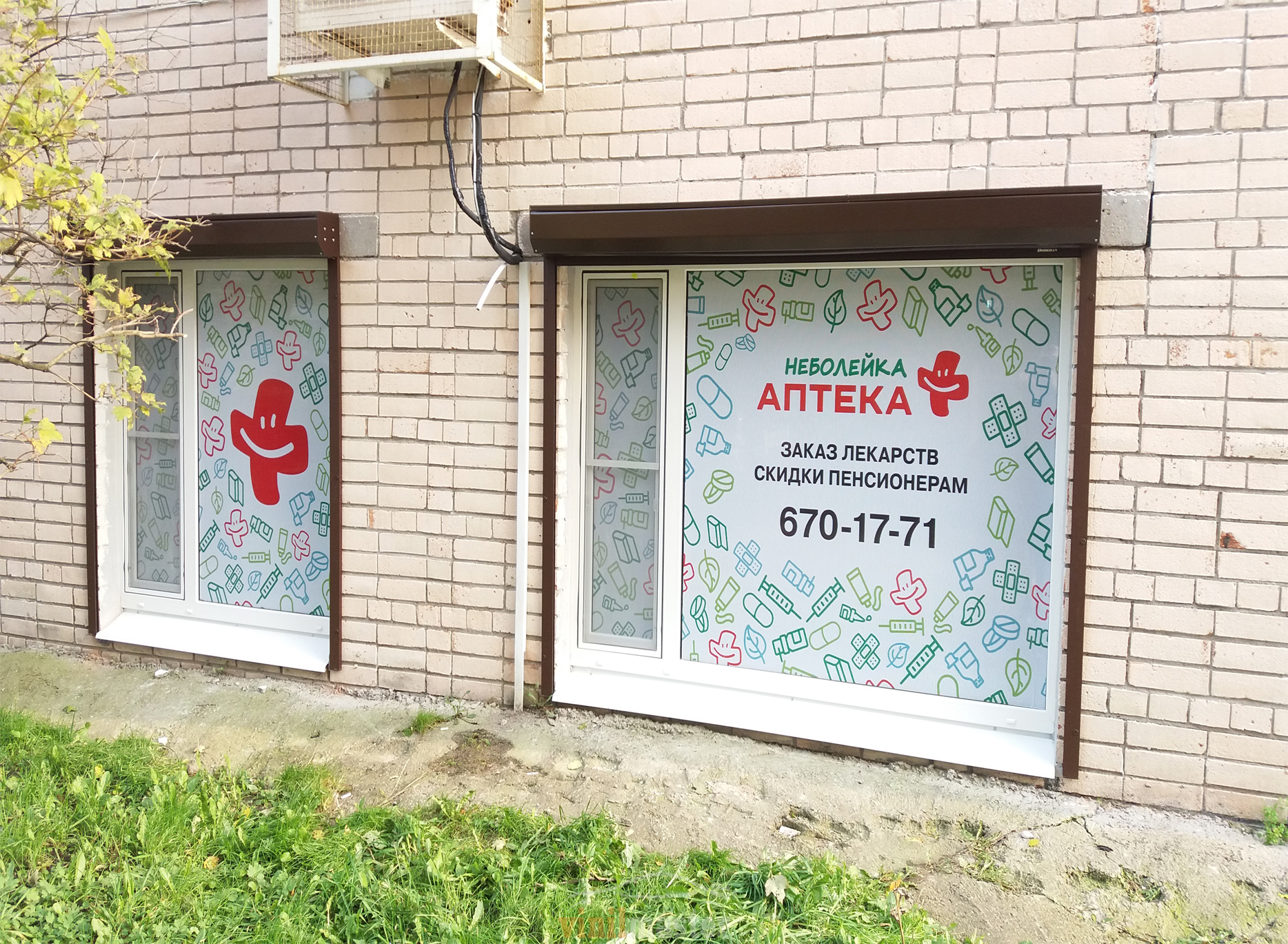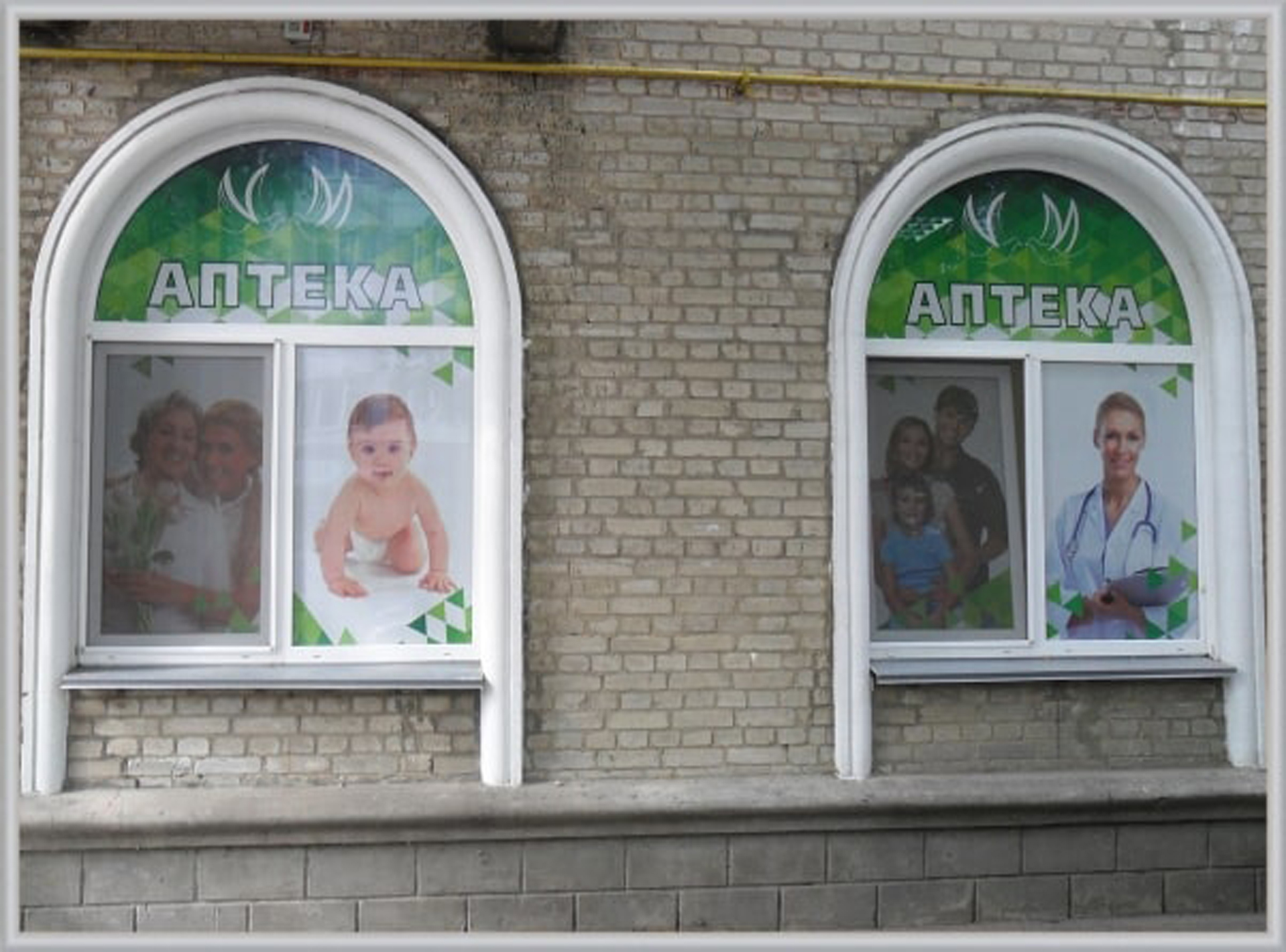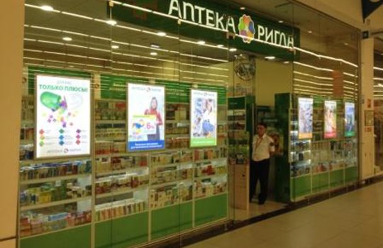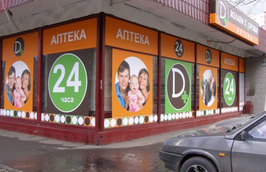 Пример брендирования входа в аптеках: