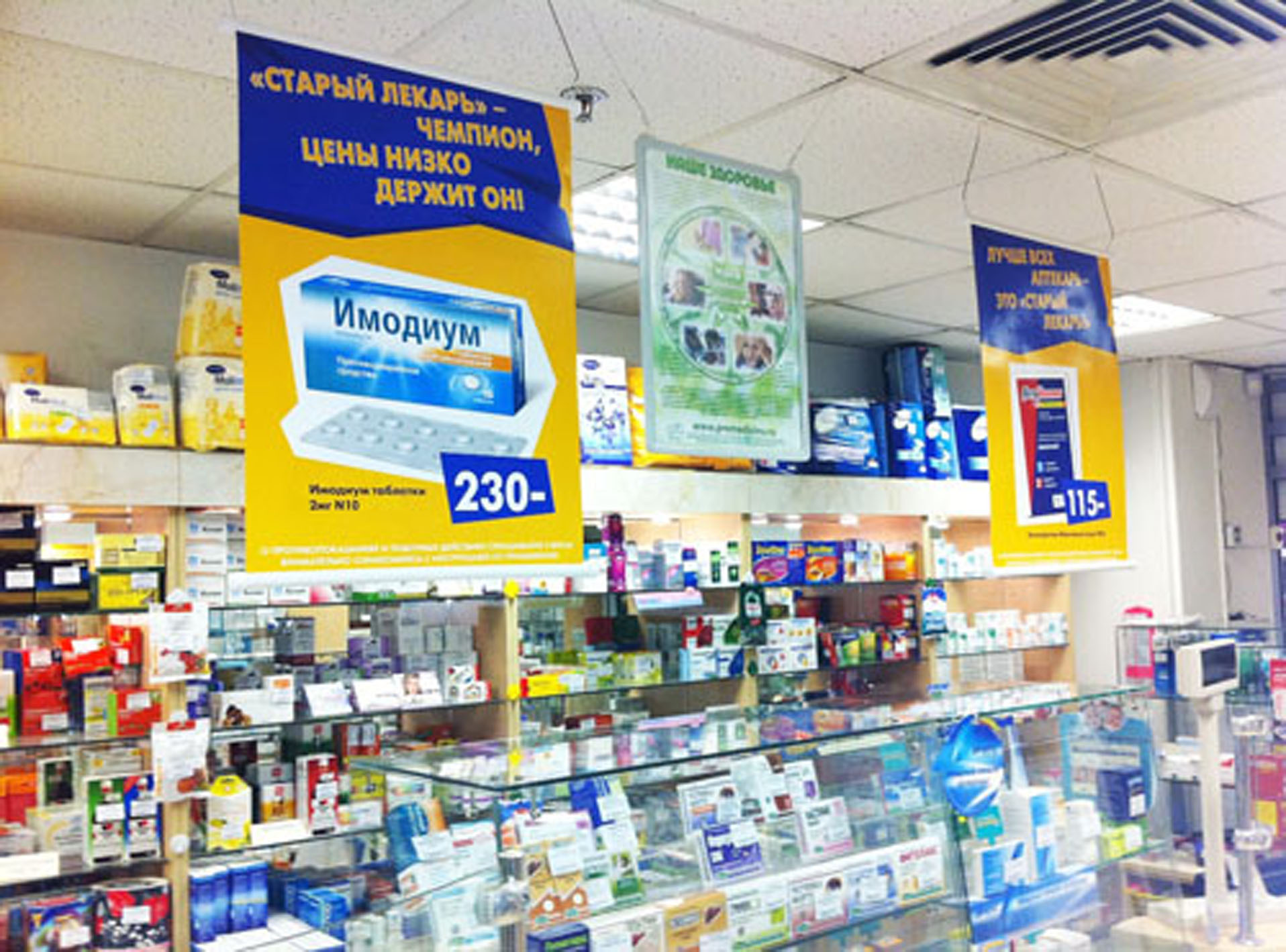 Пример печатных рекламных материалов в аптеке: