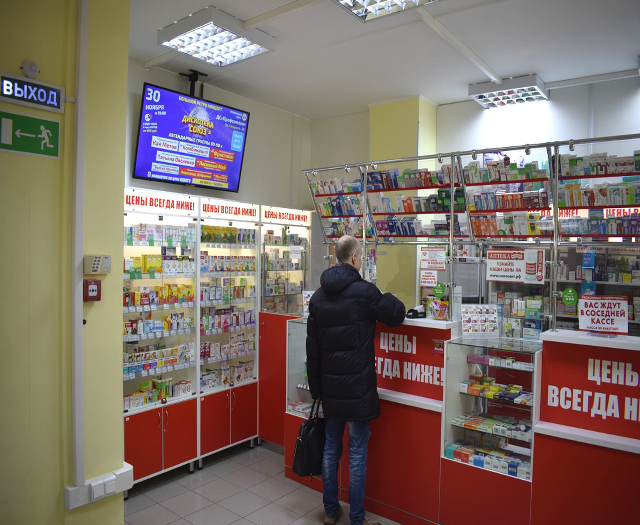 Пример рекламы на мониторе в аптеке:
