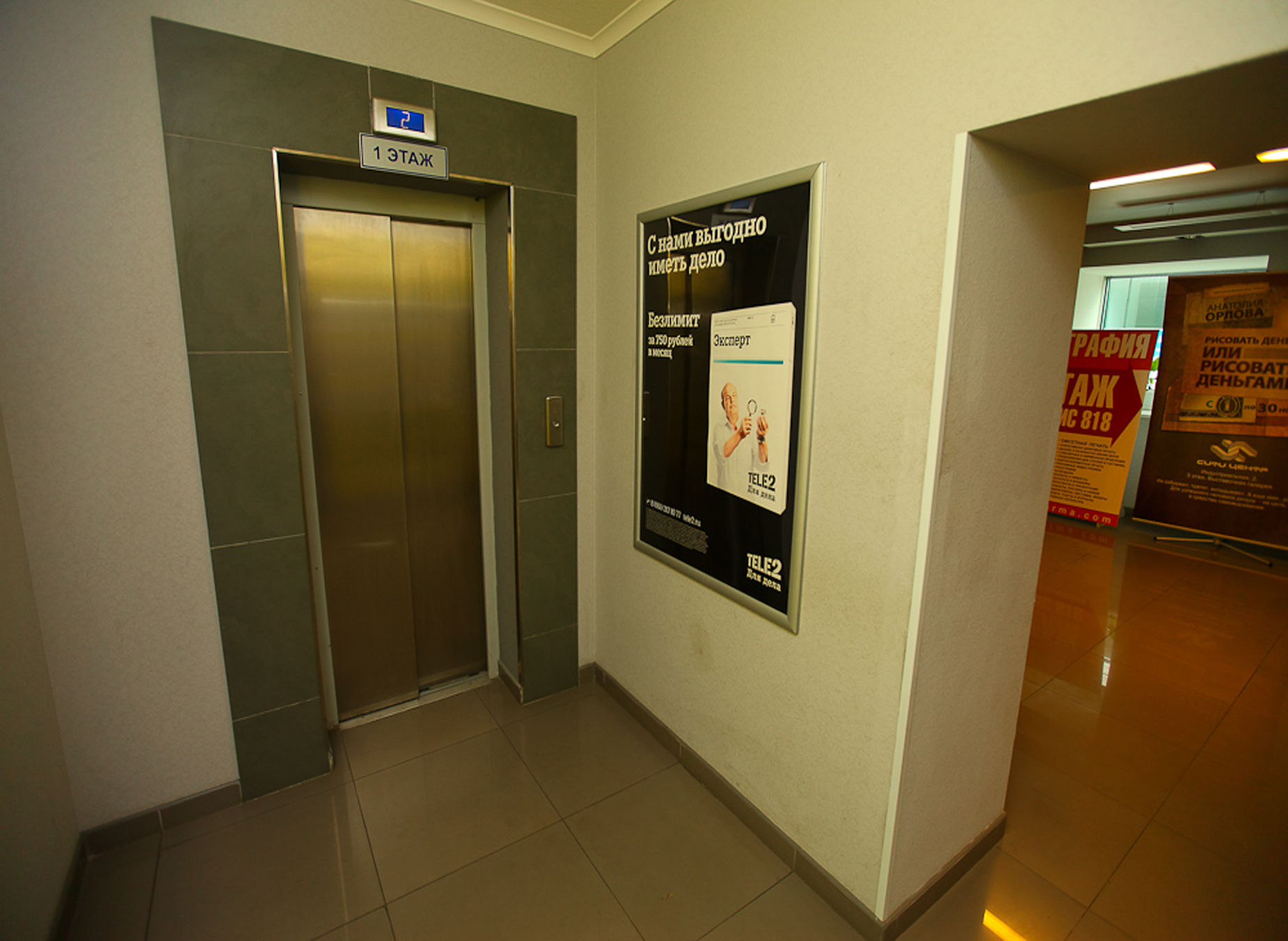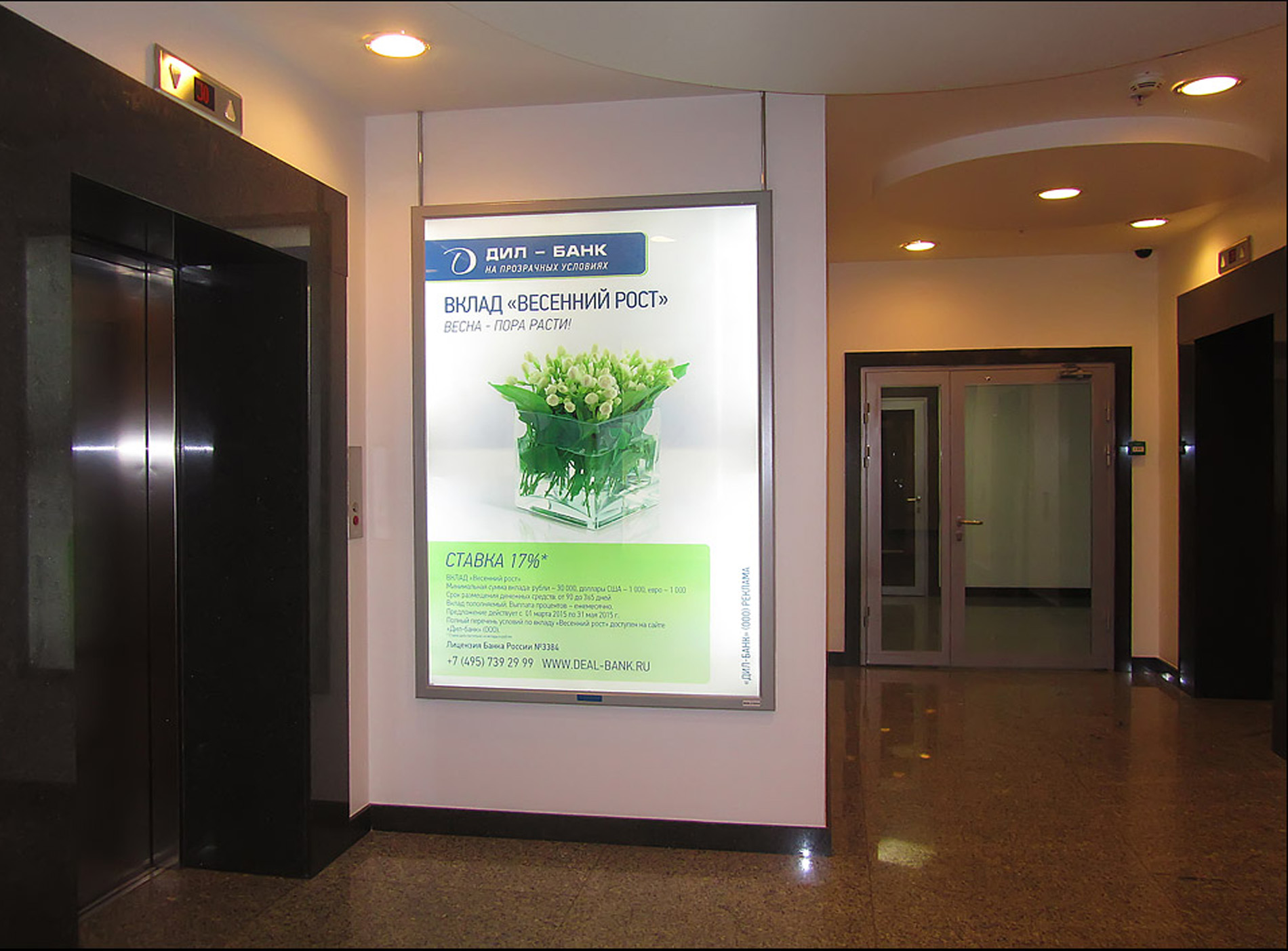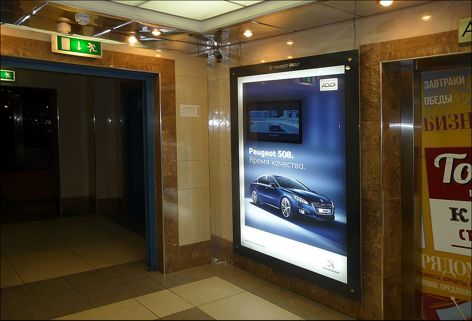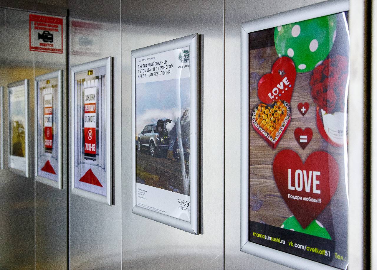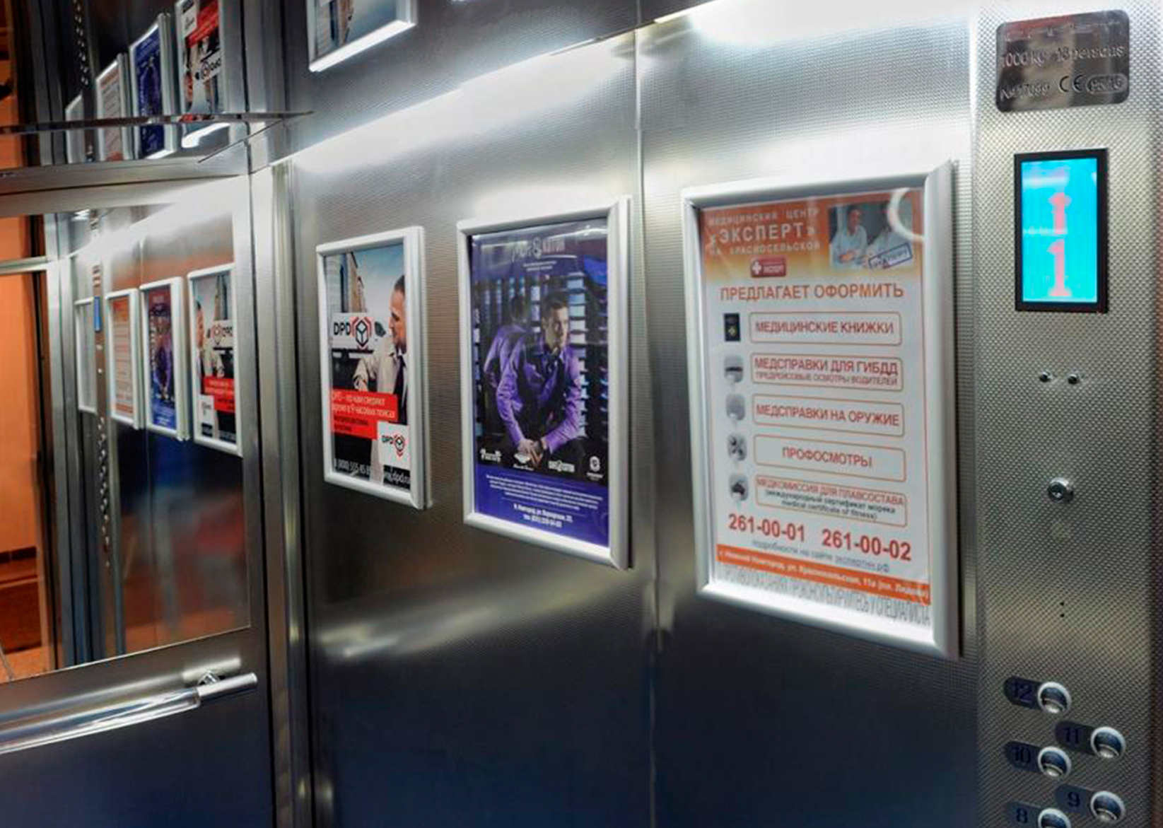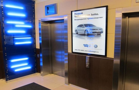 Пример рекламы в лифтах в бизнес-центрах: